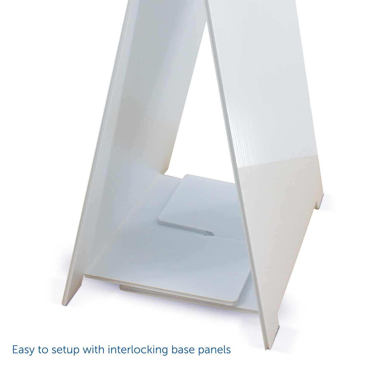 Our versatile tabletop corrugated plastic dry erase easel is the ideal solution for showcasing announcements, menus, and messages with ease. Crafted for durability and convenience, this easel is both sturdy and lightweight, providing a compact display that effortlessly fits onto any tabletop setting. Made from 100% recycled and recyclable corrugated plastic, it aligns with eco-friendly values. The thoughtful design makes it easy to transport and the ability to fold flat for efficient storage. With dimensions of 11"H x 17"W x 8"D, this easel strikes the perfect balance between functionality and space-saving necessities. 12 Pack.