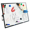 - Compact desktop dry erase easel with an adjustable tilt design for ergonomic writing and optimal viewing. Ideal for desks, tables, classrooms, offices, workshops, and home learning spaces.