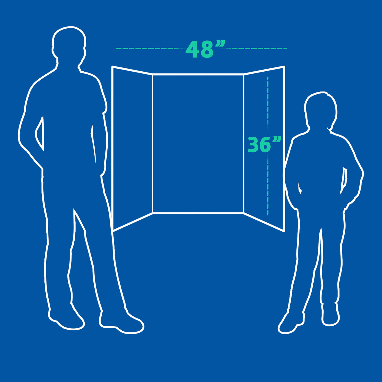 - Trifold Poster Board is 36in height; 48in width is the ideal size for all display and presentation projects. When opened center panel measures 22.5in wide, side panels measure 12.75in.
