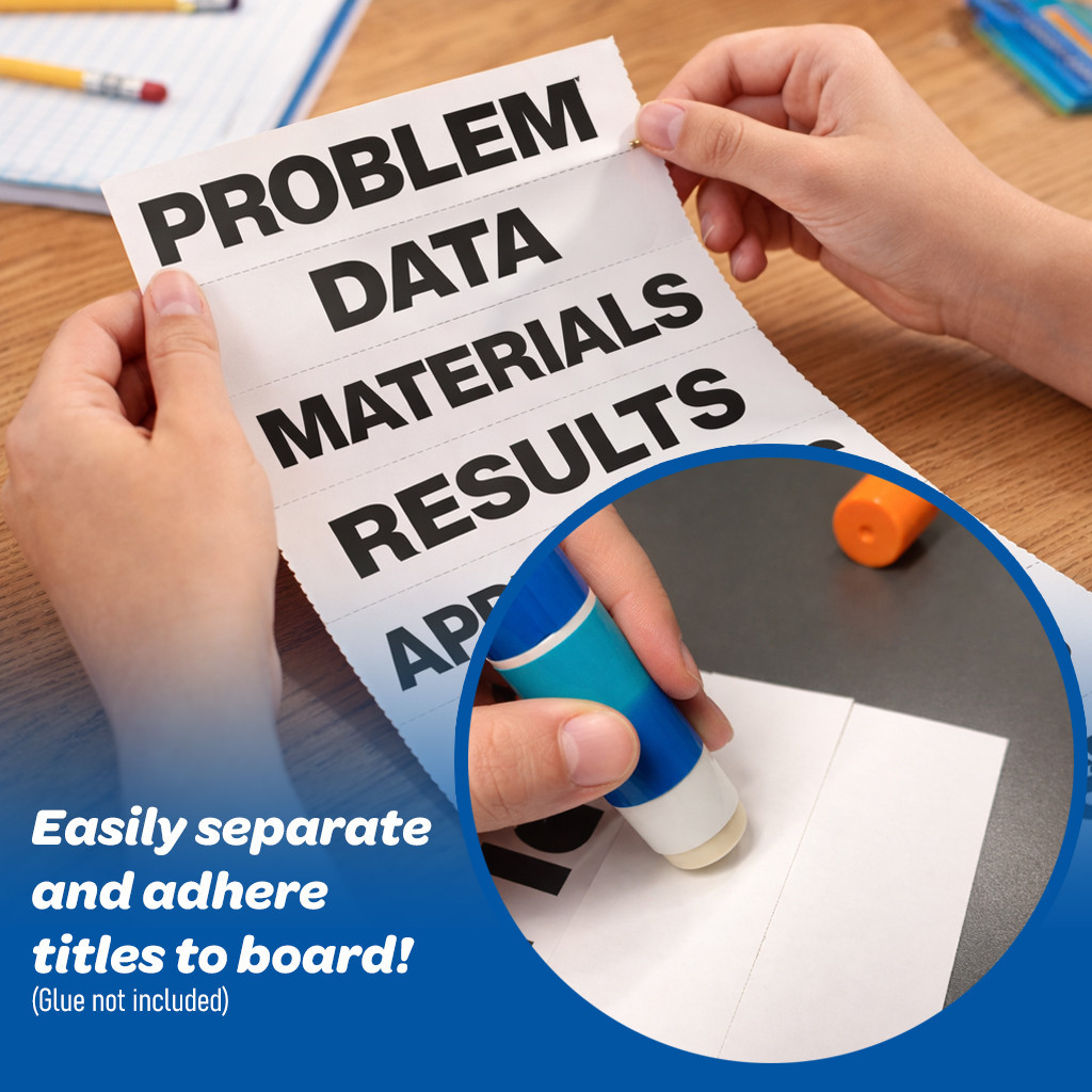 - Bold black science fair titles help projects stand out and create a clear, organized presentation that is easy for judges and viewers to read.