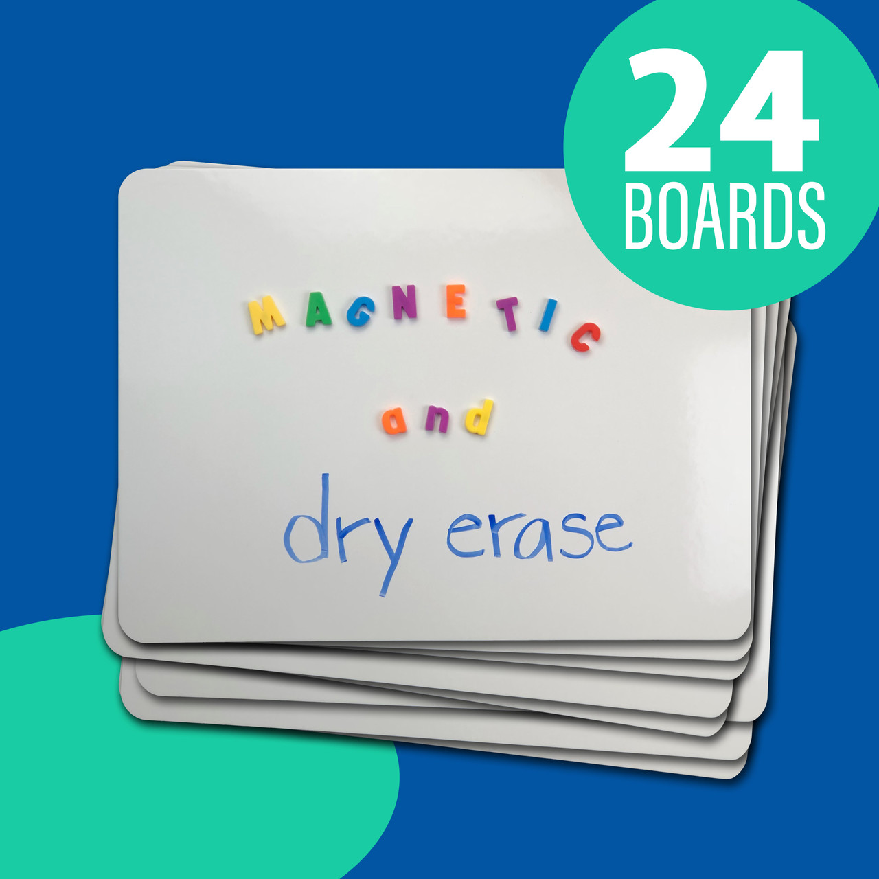 9" x 12" dry erase magnetic boards are perfect for classrooms and personal use. Their ample size and high-quality, non-ghosting surface ensure a clear, reusable workspace. Durable and resistant to warping and chipping, these boards are built to last. The magnetic surface adds functionality, allowing for the attachment of notes and accessories. Safety features include rounded corners and smooth edges for comfortable use. Ideal for group activities, the bulk pack ensures every student has a board, promoting participation and collaboration. Eco-friendly and versatile, these boards reduce paper waste and support sustainable practices. Pack of 24.