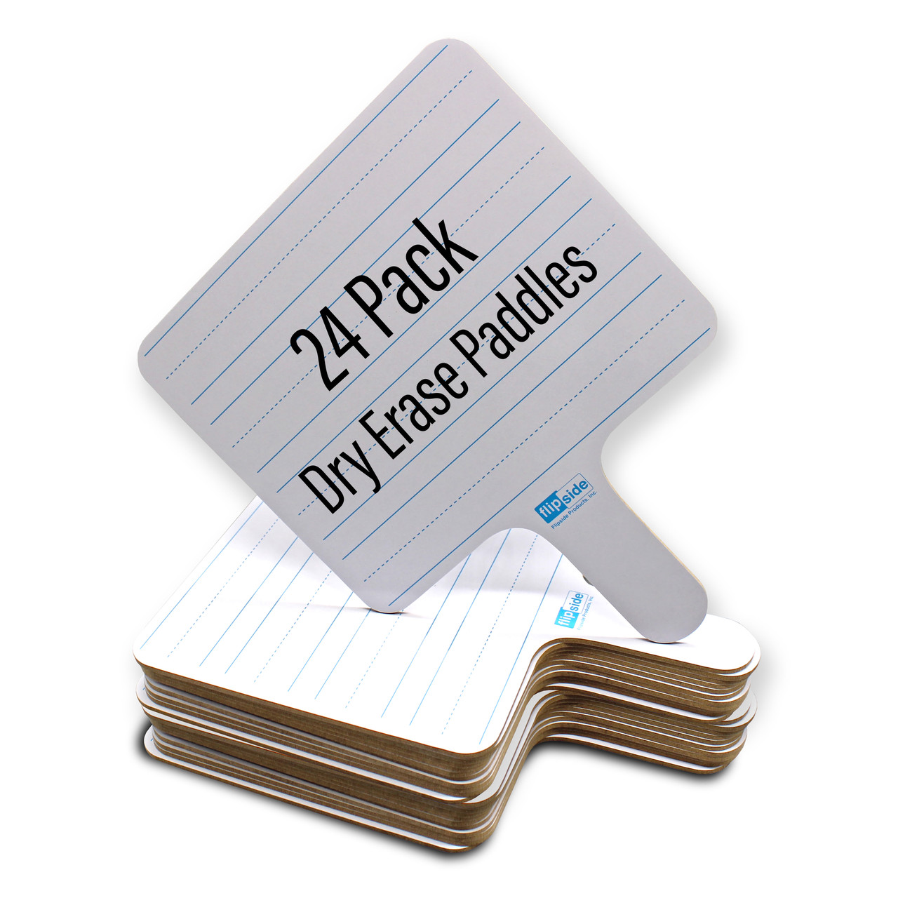 Make learning more fun with dry erase boards. 1/8" thick two-sided rectangular dry erase writing paddles are ideal for quick responses or lessons. One side features lines for handwriting practice or sentence structures, reverse side features a blank dry erase side. Includes a set of 24 individual paddles.