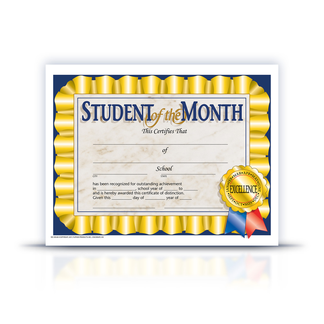 Student of the Month certificates recognize students for positive behavior, academic achievement, and personal growth, boosting their self-esteem and motivation. These awards promote a supportive classroom culture, strengthen teacher-student relationships, and provide parents with a meaningful reminder of their child’s accomplishments. Perfect for end-of-year celebrations or award ceremonies, these Hayes certificates feature captivating designs and are printed in full color on high-quality matte paper, adding an elegant touch to any recognition event. Whether customized by hand or using a downloadable template, each certificate ensures that every achievement is commemorated with distinction. Each pack contains 30 certificates, measuring 8.5" x 11", ensuring an ample supply to honor deserving students throughout the academic year. Pack of 5. 150 certificates total.